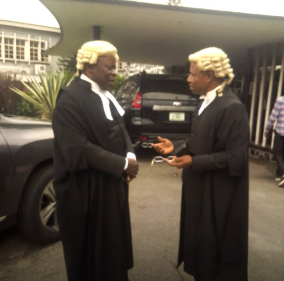 In set above are two learned senior advocates of Nigeria, SANs: Mr. Edwin Anikwem, (left) counsel to Genting International Company Limited, (the 4th defendant), and Mr. Clement Onwuenwunor, counsel to the second defendant, Engr. Friday Audu…….. after the court session on Tuesday, July 8, 2025 at the Federal High Court, Ikoyi, Lagos.