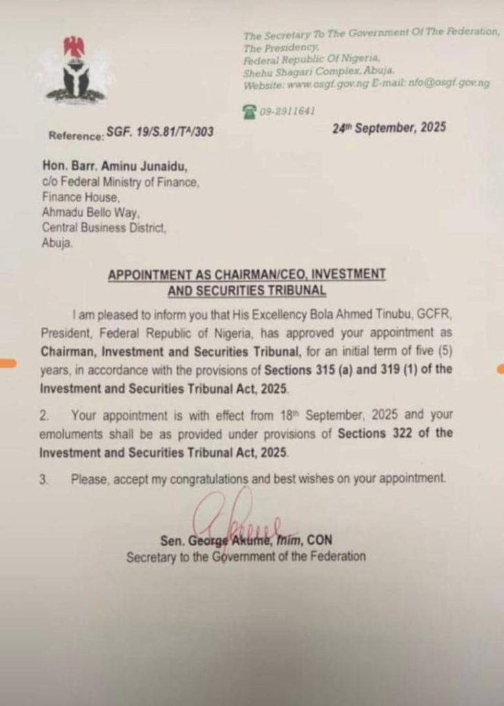 There are indications that there be crisis in at the Investments and Security Tribunal, a parastatal under the Federal Ministry of finance, over the recent appointments done by President Bola Tinubu.