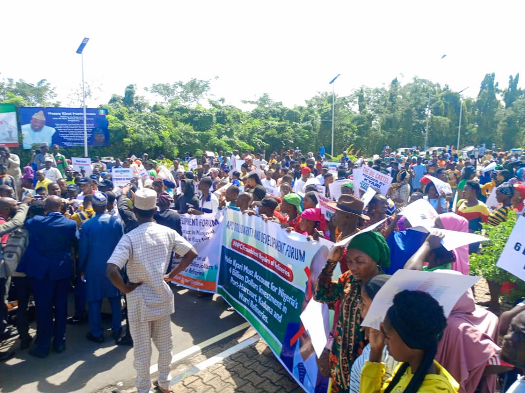 No fewer than 20,000 activists took to the three Arms Zone in Abuja on Tuesday to demand the resignation of Mele Kyari, the Group Chief Executive Officer of the Nigerian National Petroleum Company Limited (NNPCL), citing his alleged incompetent leadership.